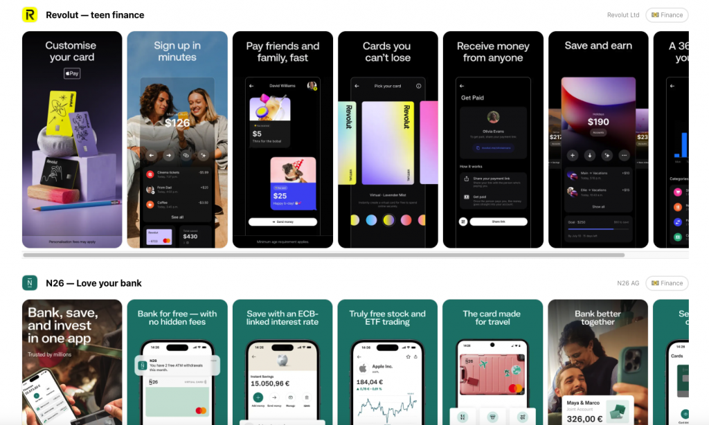 En lugar de webs completas, esta plataforma recopila pantallas específicas de apps reales, lo que permite estudiar patrones de diseño concretos como:
